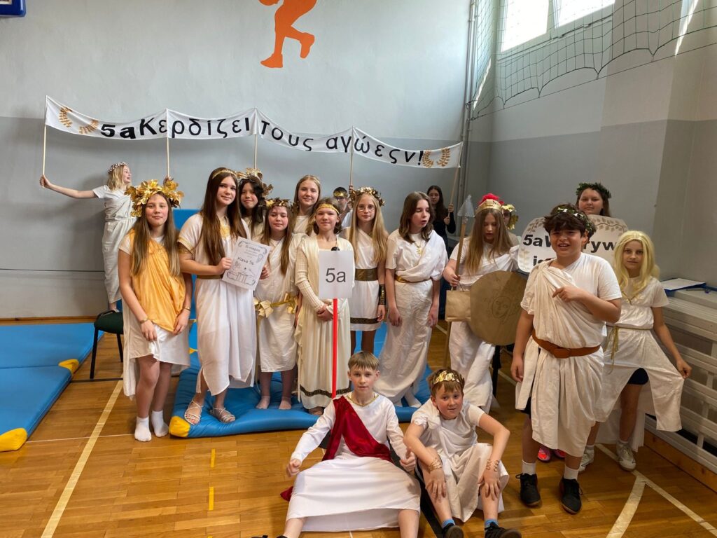 Piątoklasiści wcielili się w role bogów, bogiń, herosów oraz mieszkańców Hellady, co nadało całemu przedsięwzięciu niezwykły, barwny charakter. Uczestnicy rywalizowali w wielu różnorodnych konkurencjach, które wymagały zarówno wiedzy, jak i sprawności fizycznej oraz kreatywności. Wśród zadań znalazły się konkurencje sprawdzające znajomość treści mitów, pojęć i związków frazeologicznych, mitologiczna „Familiada”, prezentacja wybranego boga, a także zmagania sportowe, takie jak skok w dal, zapasy, rzut dyskiem, rzut oszczepem oraz bieg olimpijski.