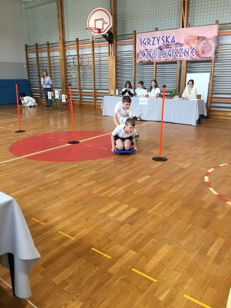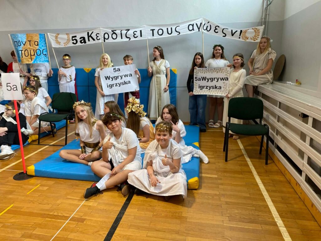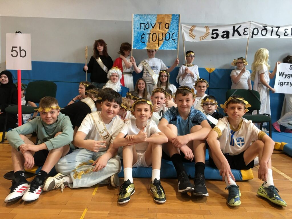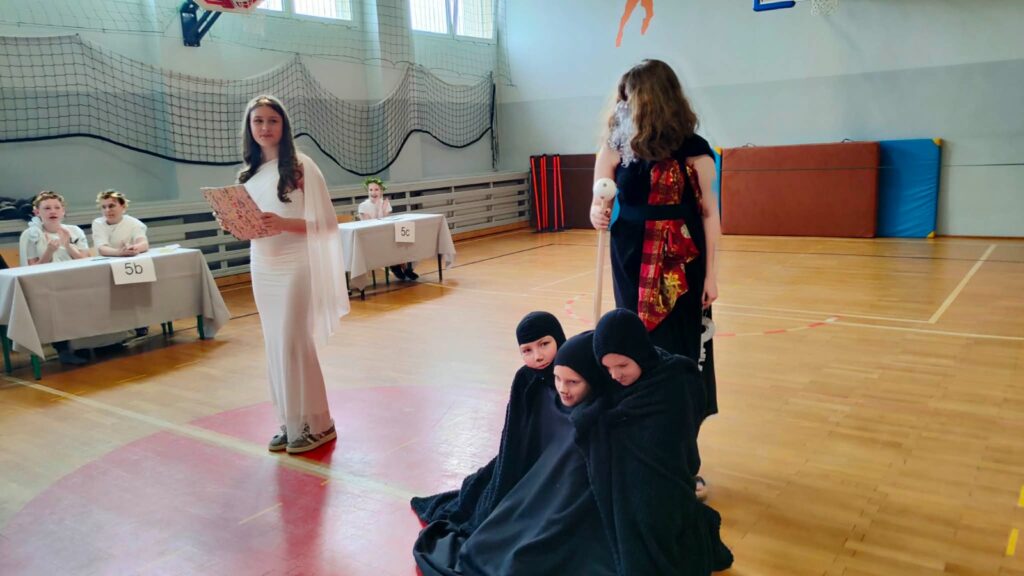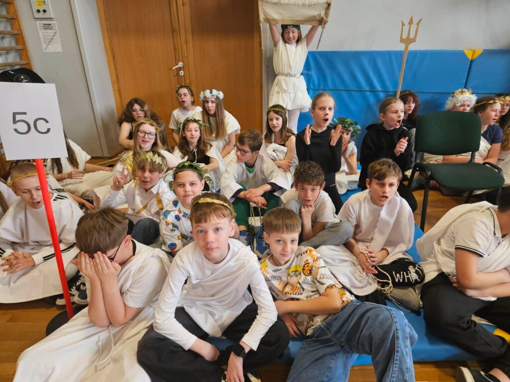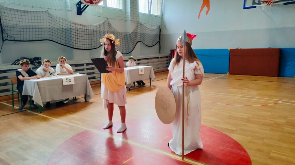 23 marca sala gimnastyczna naszej szkoły zamieniła się w wyjątkową arenę zmagań. Tego dnia odbyły się „Igrzyska Mitologiczne”, w których udział wzięli uczniowie klas piątych. Wydarzenie miało na celu nie tylko popularyzację wiedzy o świecie starożytnych Greków, ale również integrację uczniów oraz rozwijanie ich umiejętności pracy zespołowej .